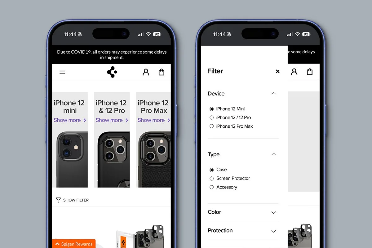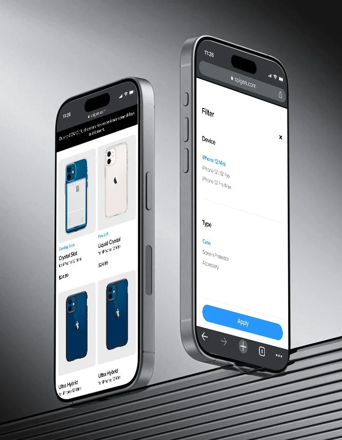 The final design prioritized clarity, scalability, and responsiveness, resulting in a more intuitive and efficient shopping experience across devices. Clear product categorization and real-time availability indicators simplified decision-making and reduced user frustration. For mobile users—who represent the majority of Spigen’s customer base—the experience was significantly improved with collapsible filters, thumb-friendly navigation, and optimized content layout. These enhancements led to increased product discoverability, higher mobile engagement, and a noticeable reduction in cart abandonment. The iterative design process, supported by ongoing feedback from cross-functional teams, ensured strong alignment between user needs and business goals.
